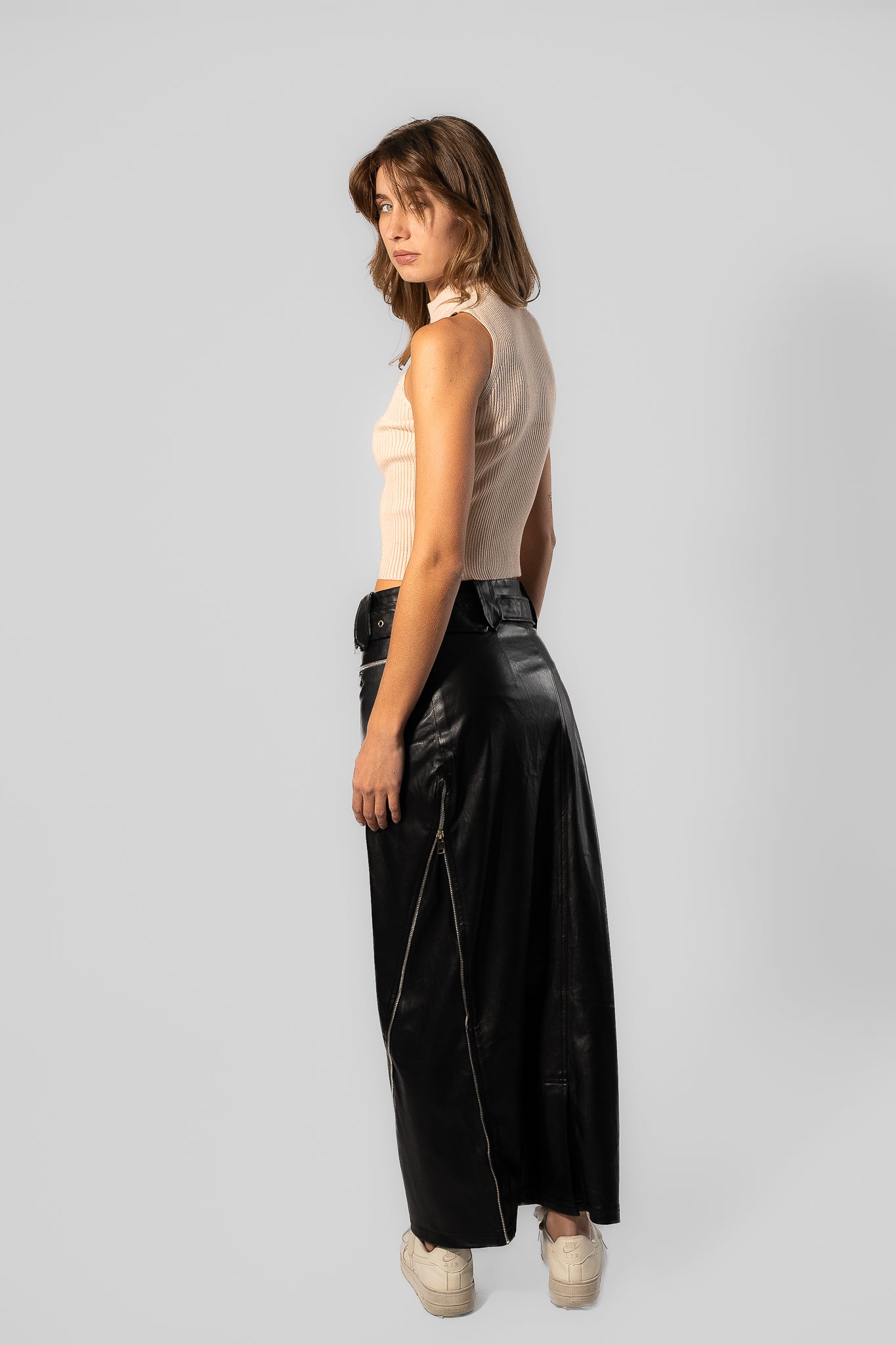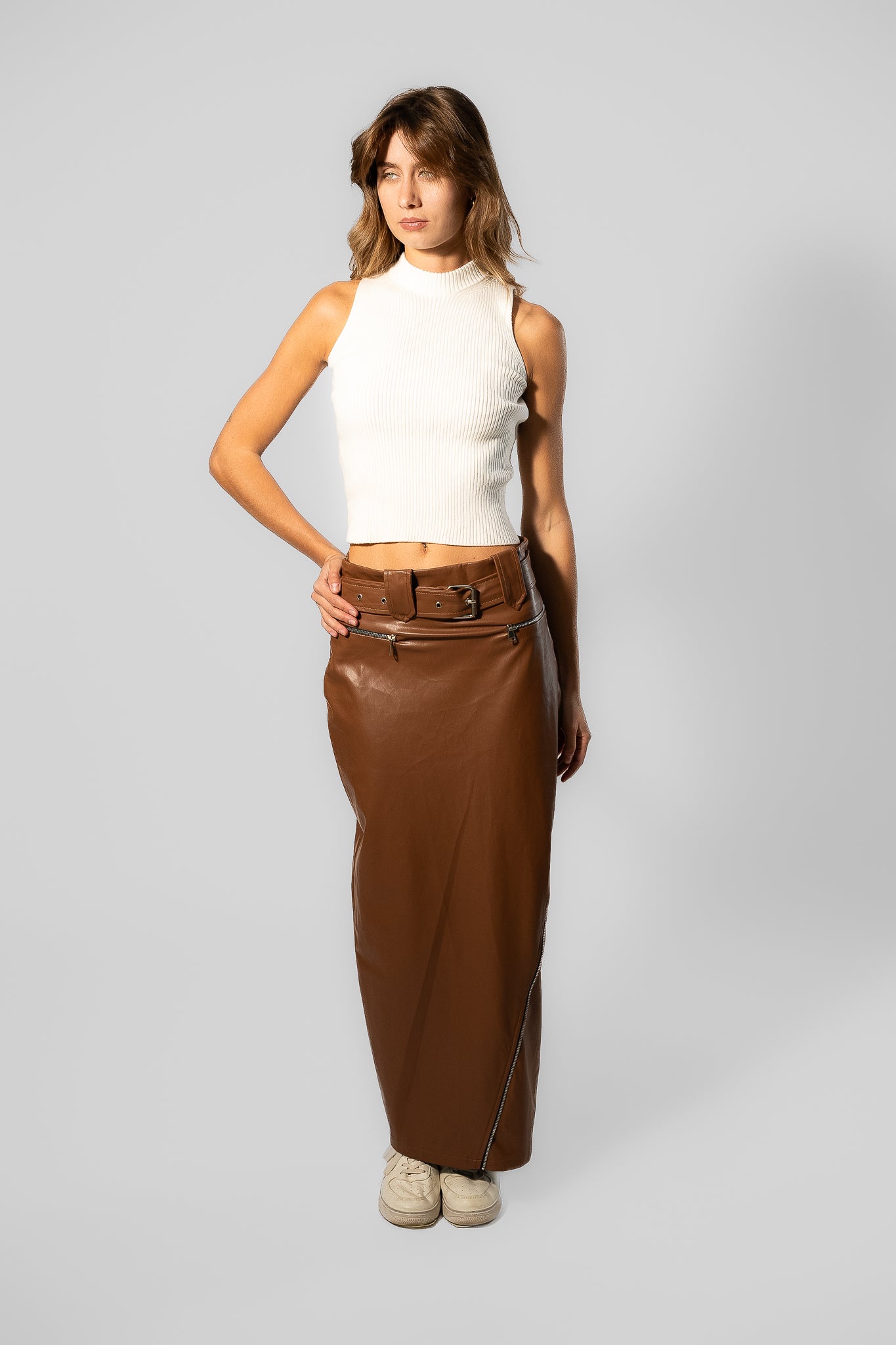 Leather women’s skirt with side zipper